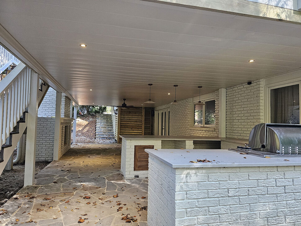 Outdoor kitchens require protection from moisture. Underdecking makes it possible to add: